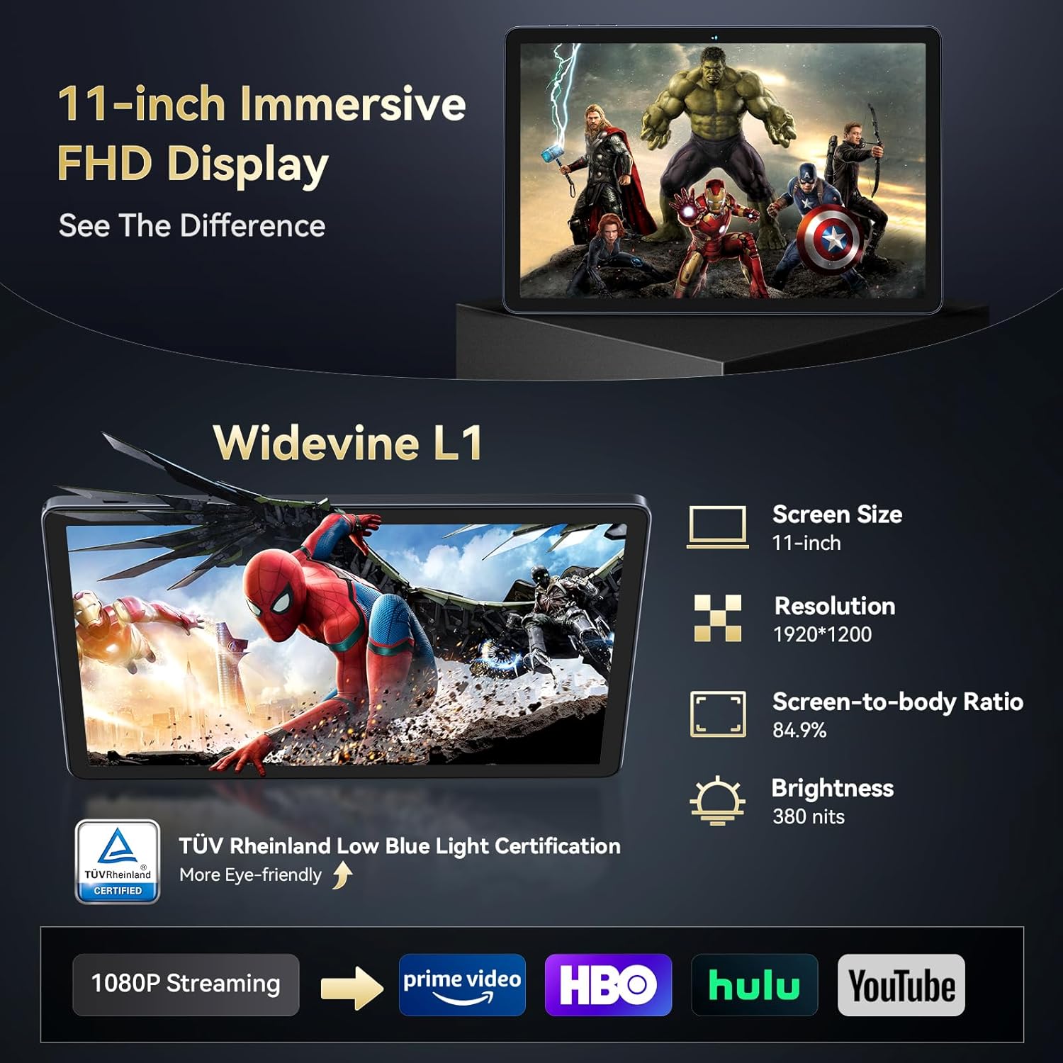 - 📺 📺11″120Hz Display & Widevine L1: Experience ultra-smooth scrolling and vibrant, true-to-life colors on the 11 inch Tablet BESTTAB W90’s large 11-inch 120Hz display—perfect for gaming, streaming, and multitasking. Widevine L1 certification lets you enjoy 1080p HD content on Prime Video and other platforms without compromise, while adaptive brightness ensures comfortable viewing in any light.