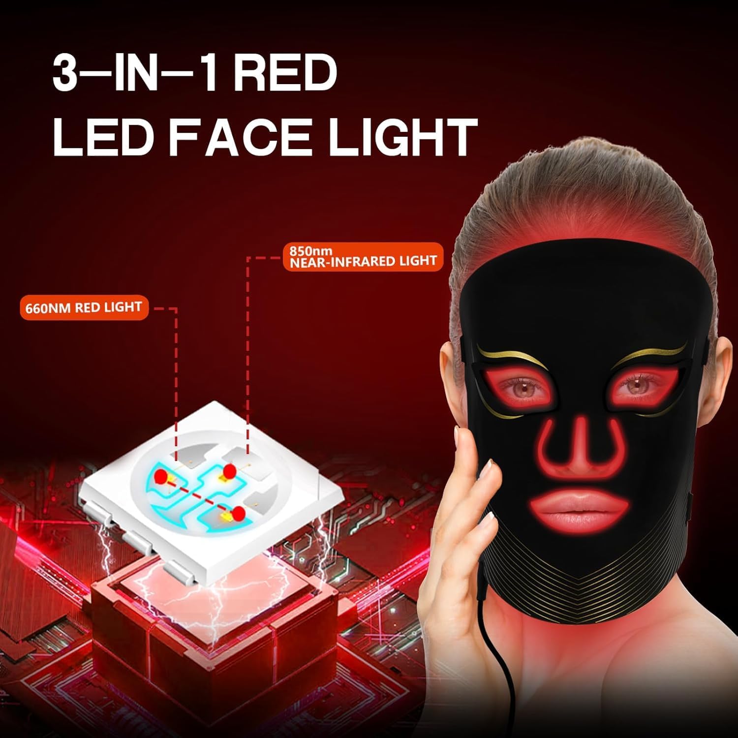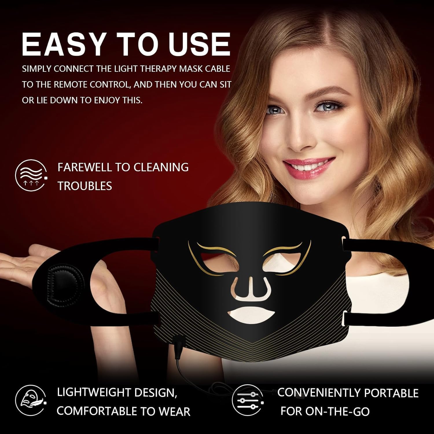 【SAFETY & COMFORTABLE】Simply connect the light therapy mask cable to the remote control, then select the desired light mode on the remote control and and then you can sit or lie down to use!